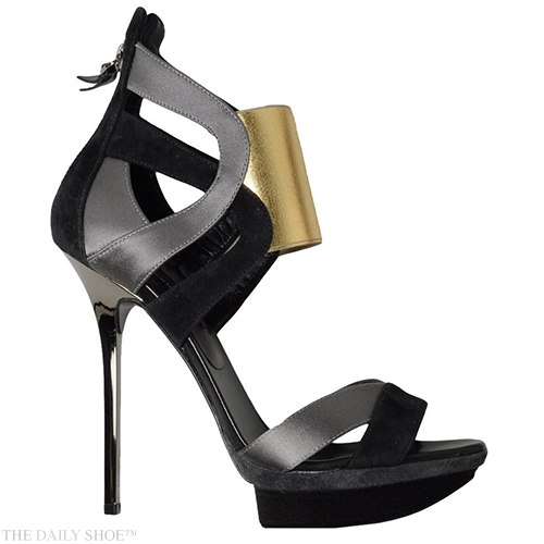 THE DAILY SHOE REVIEW – This is a shoe with character! Steel grey leather and black suede with an elasticised gold strap over the bridge, this trio of colours makes for a beautiful sandal by Diego Dolcini. A rear zip, square toe line, 4.5 inch silver heels and the masterly intersection of the three colours on […]