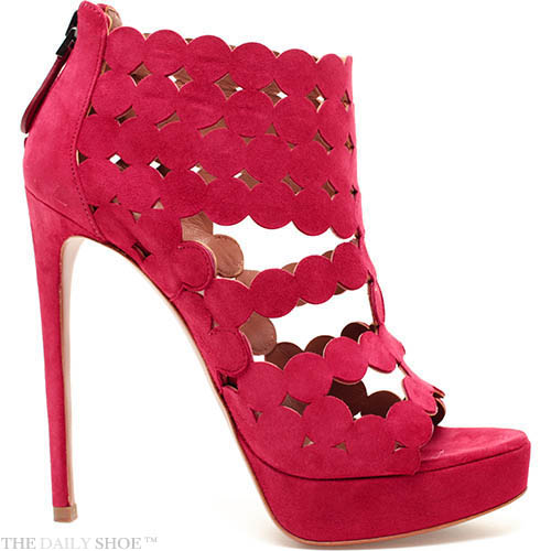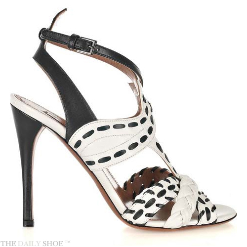 THE DAILY SHOE REVIEW – Perfect for showing off that tonal gam, these Alaïa sandals have an edge with dramatic pearly embellishments on the ankle and toe straps.