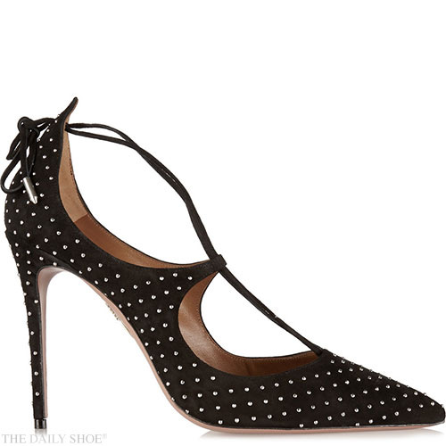 Christy studded suede pumps by AQUAZZURA “Aquazzura’s ‘Christy’ pumps get a tough-luxe update with tiny silver stud embellishments. This point-toe pair has been crafted in Italy from buttery black suede and secures with adjustable ankle ties for a customized fit. Complete the look with cropped jeans and a biker jacket.” – I found these online […]