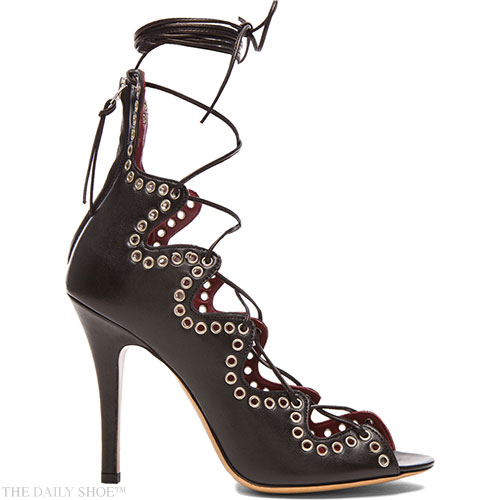 THE DAILY SHOE REVIEW – From the tip of the perfect stiletto heel to the elegant bow detail in front, this knock-out Isabel Marant “Dore” sandal makes a spectacular statement. Fashioned in glossy metallic leather with a python-skin effect, the buckled ankle strap and cushioned quilted leather upper make this a perfect choice for your special […]