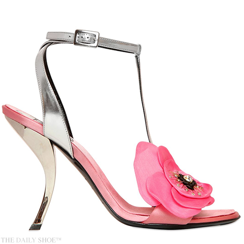 Oh, darling, prepare to have your shoe-loving heart skip a beat. This is a masterpiece. A brazen flirtation of silver and pink, elevated by a sculptural heel that is nothing short of architectural genius. The Virgule heel, that comma-shaped curve of pure desire, has been reinvented here as a statement piece.