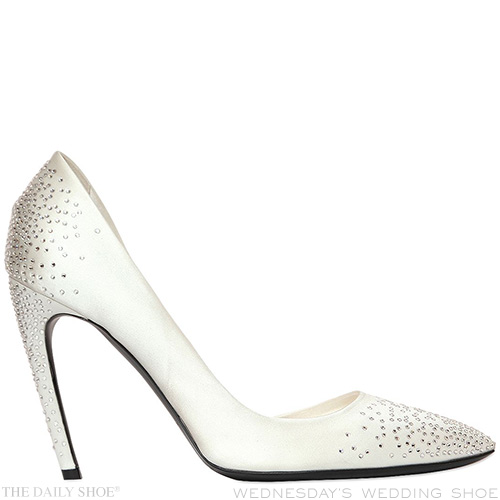 Love these?… SHOP ONLINE What do you think?… LEAVE A COMMENT Wednesday’s Wedding Shoe by ROGER VIVIER “Featuring a 100mm Silk satin covered Choc heel and embellished with Gradient Swarovski crystals. The pointed toe has a slight almond shape finished with a full leather sole. Made in Italy from 100% silk.” – Luisaviaroma